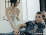 Curly ebony teen fucks her white stepbro 5:57