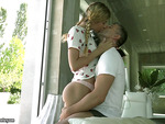 Kinky man licks sweet pussy of his hot blond haired girlie at kitchen 7:40